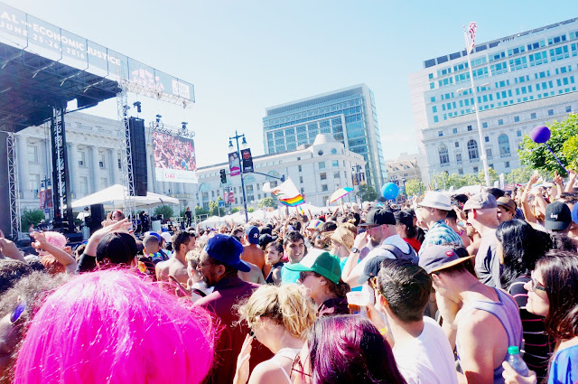 Embarrassing to say but I've also never really been to Pride Day in SF. Yes I'm embarrassed. But I never had the chance before 21 (the funnest part about Pride Day is the drinking) and was gone throughout my 20s. So what a better way to celebrate it fully! We started the day by watching the parade, headed for a few pre-drinks at Dolores Park, brunch at a popular venue, and then ended with some dancing/drinking bash! This is the way to celebrate people of all gender, sexual orientation, marriage, love, and body types.